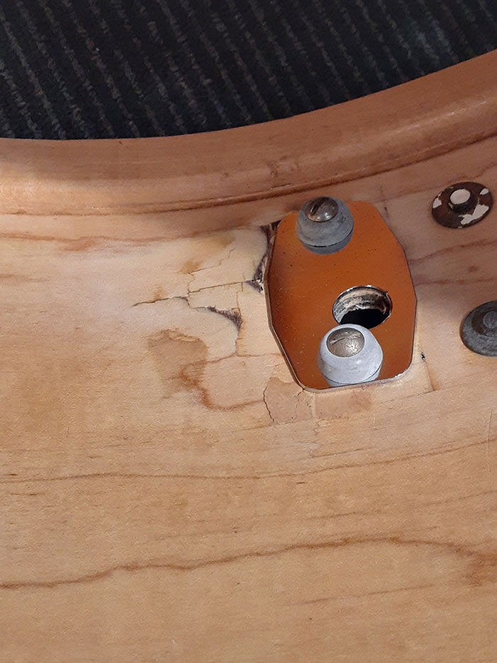 後の1970年代後期には全てゾラコートと呼ばれる、シェル内面がグレーのゾラコートに移行される前のいわゆるクリア塗装と呼ばれる頃のシェル仕様です。この年代の2タムセットはとても要望の多いセットです。