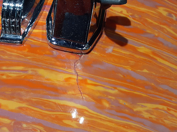 カバリング表面、全体的にシェル、パーツとも状態良好ですが、BDのレッグブラケットの片側周辺にキズを修復した跡がございます(画像参照)が問題なく使用できますのでご安心くださいませ。(表面には若干のカバリングのワレあり:画像参照)