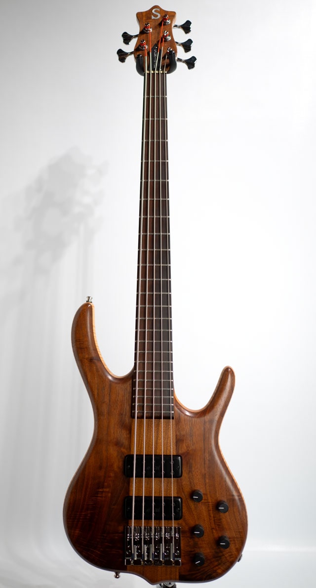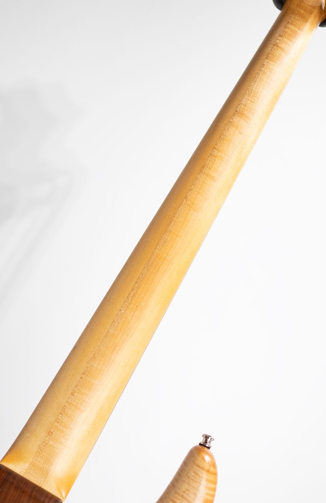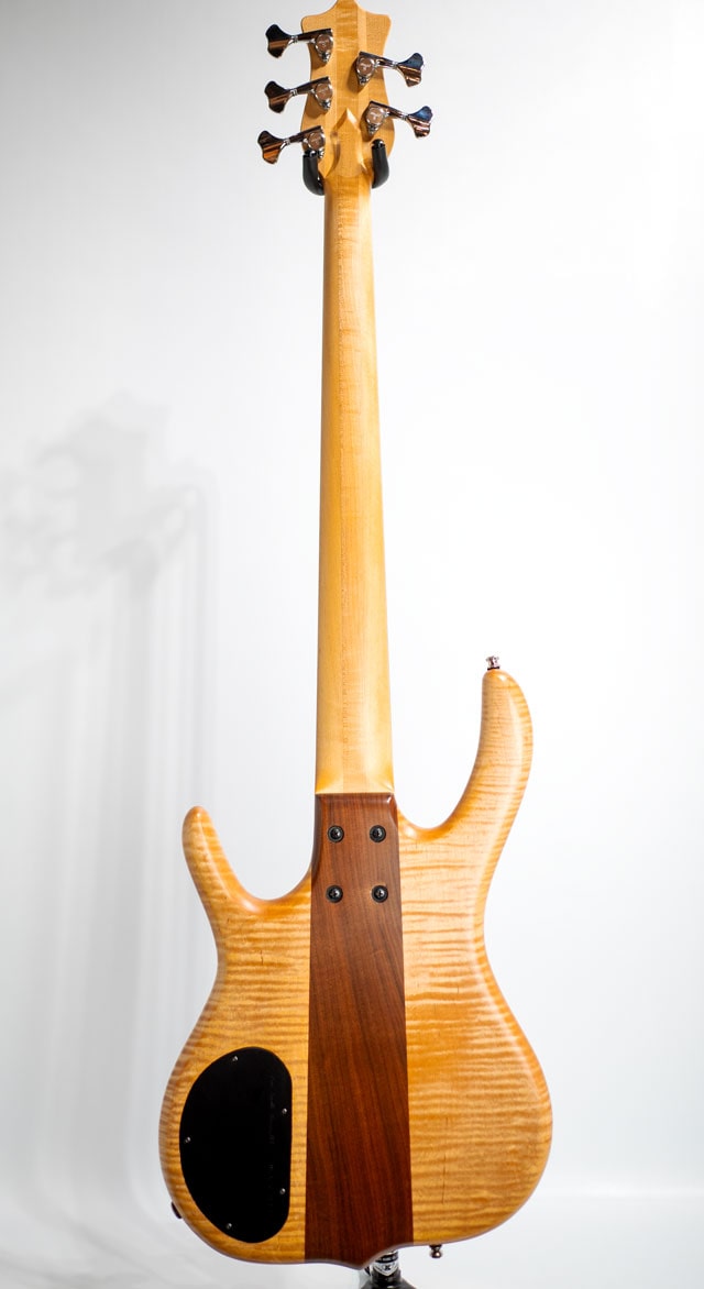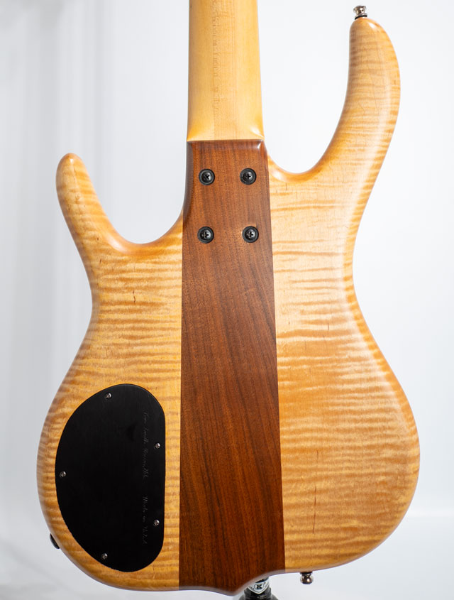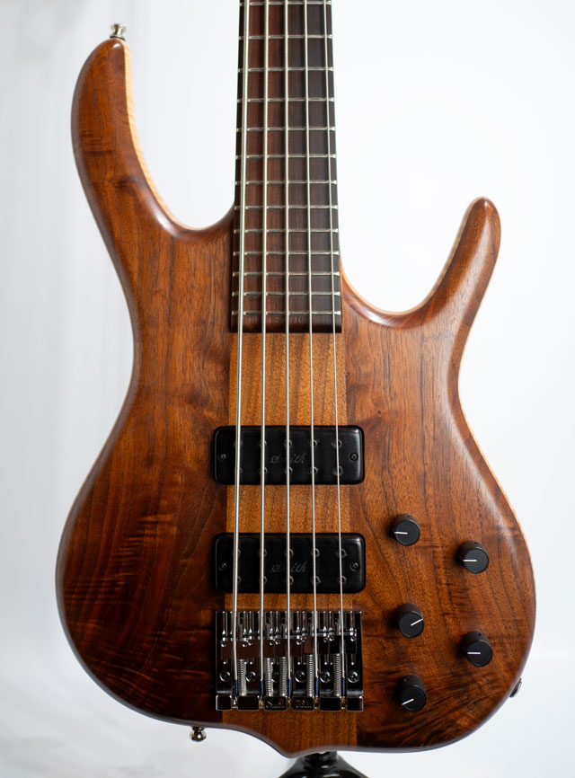 ウォルナットトップ&メイプルバックのウィングボディ、センターコアはウォルナット。ネックはボルトオン構造のメイプル3pc、パーフェロー指板。オリジナルピックアップ&プリアンプを搭載。ボルトオン構造のモデルらしいスピーディな立ち上がりが印象的です。スルー構造のモデルにも似た芯の太さを持ち合わせており、豊かなローミッドを含んだ太く骨太なサウンドが鳴り響きます。