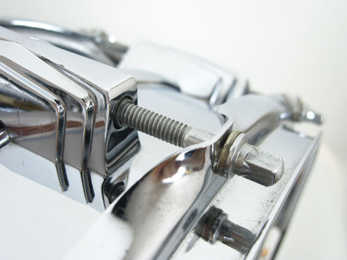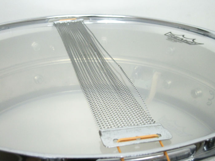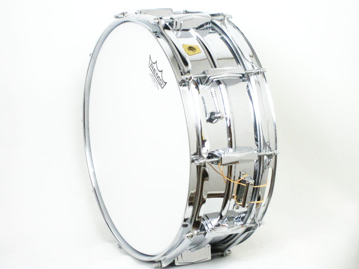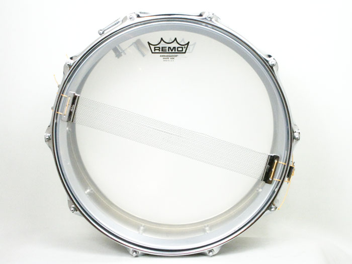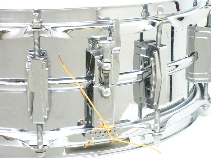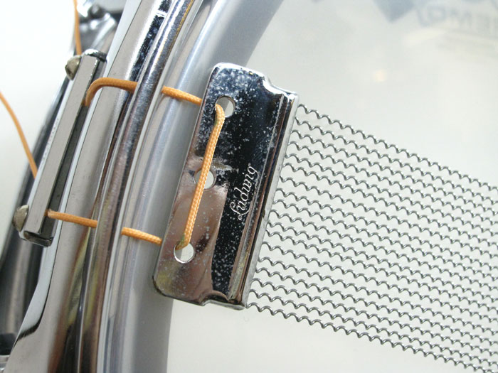 ヘッドはREMOコーテッドアンバサダー装着。スナッピーはよれていますが60年製オリジナルワイヤーL-1930を希少のため装着しています。