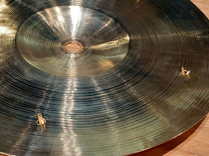 分かる方にはシンバル表面のハンマリングを見てすぐお分かりだと思いますが、あのSpizzichino cymbalを彷彿とさせる美しいハンマリングが施されています。