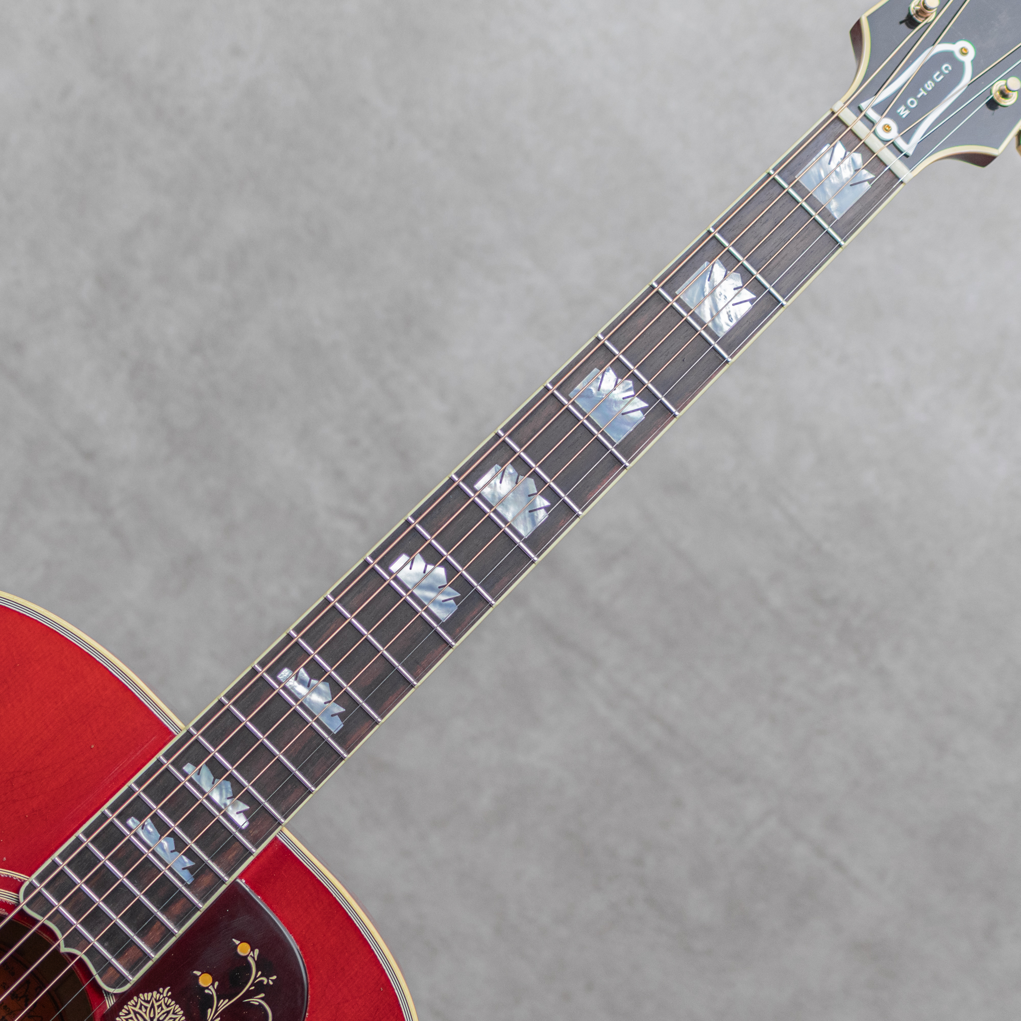 1894年の創業から130周年を迎えた2024年に、Gibsonがブランド最高峰ギブソン・カスタムから発売した”Jimmy Page 1964 SJ-200 Cherry Tea”。伝説的ロックバンド “Led Zeppelin” の共同創始者で世界的ギタリスト”Jimmy Page”のシグネイチャーモデルで、マーフィーラボのライトエイジング技術にて世界限定100本のみで製造されたファン垂涎の1本。外装箱まで保持されたコレクタブルな2024年製極上USED品。AAAシトカスプルーストップ、AAAフレイムメイプルサイド&バック、3pcsフレイムメイプルネック、インディアンローズウッド指板、クルーソンワッフルバックキーストーンゴールドペグ、MOPクラウンヘッドロゴ&指板インレイ、MOPインレイムスタッシュブリッジ、ABR-1ブリッジサドル、エングレイブドポインテッドラージピックガード、トラディショナルハンドスキャロップドXブレイシング、マーフィーラボライトエイジドフィニッシュ、直筆サイン入りボディインナーラベル。歴史上、最も象徴的なギタリストのひとりと言えば”Jimmy Page"の名前が挙げられます。彼が”Led Zeppelin"のデビューアルバムをレコーディングする際に選んだアコースティックギターは、60年代半ばに製造されたギブソン"SJ-200"でした。彼はその伝説的なアルバムの複数の曲で実際にそのギターを使用しました。Jimmyはまた、1970年4月26日にジュリー・フェリックス・ショーにソロで出演した際にもそのギターを使用し、“White Summer/Black Mountain Side “を演奏しました。そんな1964年製”SJ-200”を”Jimmy Page"との緊密なコラボレーションによって製作された本モデル。サウンド特性や使用痕にはじまり演奏性や鮮やかな”Cherry Tea Sunburst Finish"に至るまで、あらゆる点に関する”Jimmy Page"本人からの要望が取り入れられています。使用マテリアルはもちろん最上グレードを使用され、ネックジョイント部が少し胴厚に設計された本器。サドルは当時の復刻となるナイロンサドル搭載ABR-1とチューンOマチックが別で付属するこだわり様。また、マーフィーラボ・ライトエイジドフィニッシュを採用することで、Jimmyの回想に基づき細部に渡るまで再現されています。コレクタブルなアイテムに嬉しい限りで、全くの新品同様コンディションで入荷した本器。付属する”Zoso"ロゴオリジナルカスタムハードケース、"Zoso”証明書、Gibson"The Garden"ヴィンテージストラップなどの付属品も完璧にコンプリートしています。さらには外装箱まで保持されたコレクタブルな1本。発売後すぐに完売してしまった”Jimmy Page"シグネイチャーモデル。お見逃しなく。。