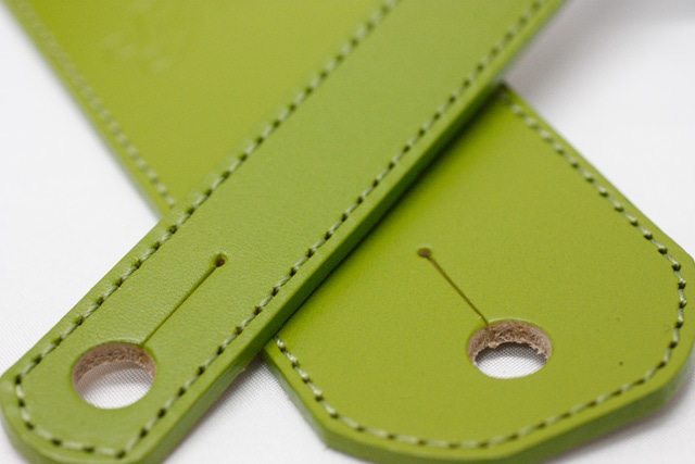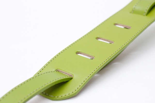 丈夫なレザーを使用していますが、ストラップピンの通し穴は少し大きめに型どっておりますのでロックピンを取り付ける場合にも使いやすい仕様。通常のレザーストラップにありがちなストレスも改善されています。