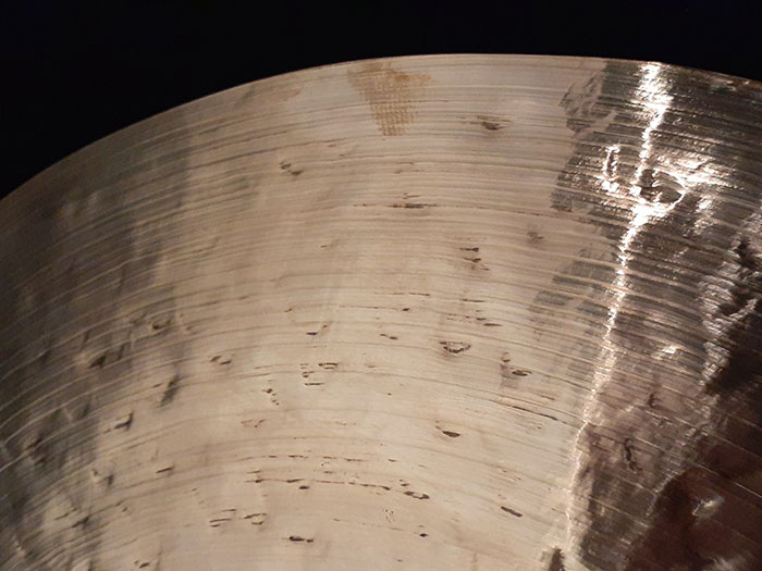 分かる方にはシンバル表面のハンマリングを見てすぐお分かりだと思いますが、あのSpizzichino cymbalを彷彿とさせる美しいハンマリングが施されています。