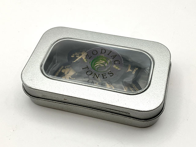 高品質でとても美しい仕上げのピックを作り出している、イギリスのピックブランドTimber Tonesの、コンピューターの数値制御による機械加工、CNC加工により形成されたZodiac Tones。12星座のデザインが美しく施されており、実践での仕様はもちろん、コレクションやプレゼントにも喜ばれるシリーズです。Gift Boxに入った12種が1枚ずつ入ったセットです。