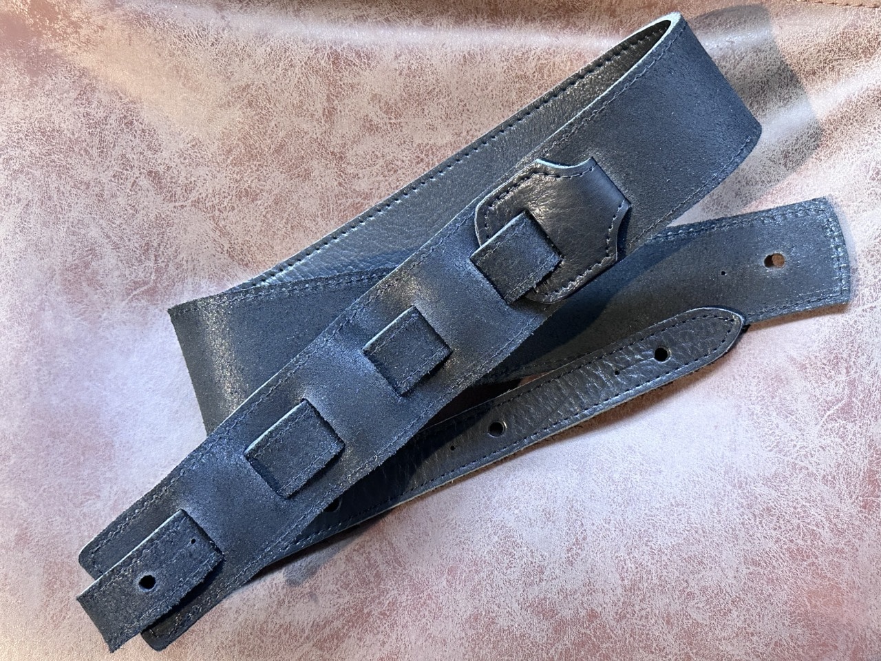 ストラトなどにも似合うように巾を5.5cmとレザーストラップとしてはスリムに仕立ててあります。