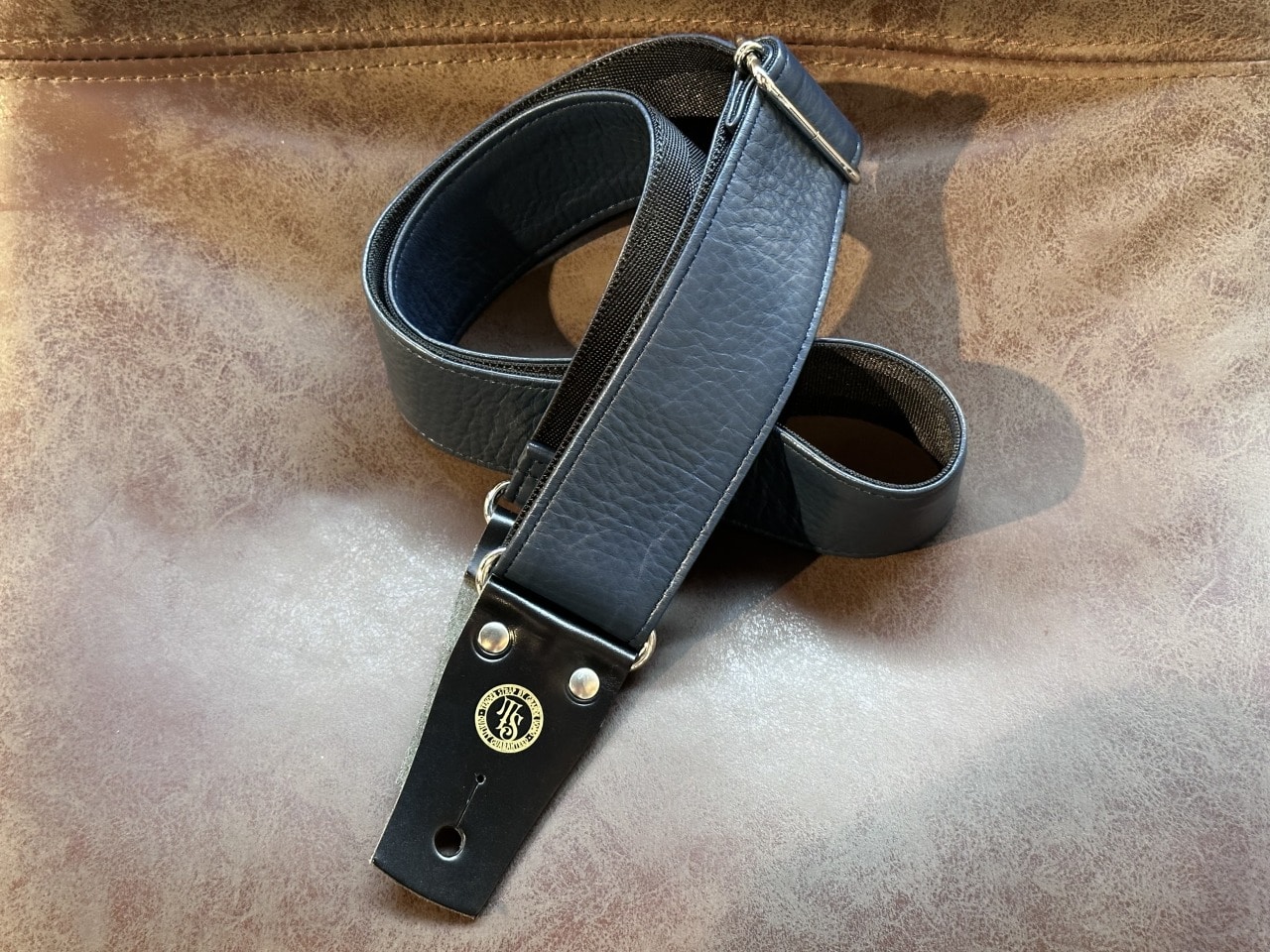 立って演奏した際にギターを動かしやすいナイロン素材と高級感のある本革を使用したデザインと実用性を両立したモデルです。