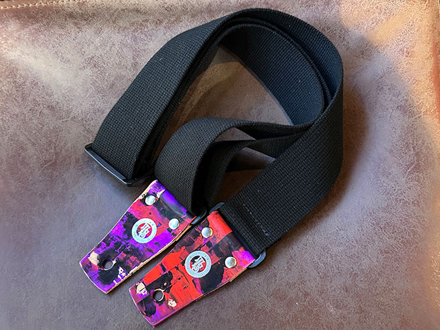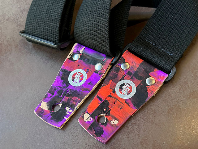 大阪に実店舗を構えるギター・ベースストラップ専門店 Grande uomoがプロデュースする新ストラップブランドTENDER STRAP!! 本体に柔らかくて肩への馴染みの良いアクリル製のベルトを使用したストラップです。 ※こちらはレザーの部分に1点1点ペイントを施した完全一点モノになります。 剣先の革はしっかりとした本革を使う事により、強度も◎ ストラップ本体の素材には柔らかくて肩への馴染みの良いアクリル製を使用し、ベルト調整のバックル部分にはギターを傷つけにくいプラスティックパーツのものを採用しております。可愛さとは裏腹に、使い心地は最高です。 また、ストラップピン取り付け部分には、しっかりとした本革を使う事により革がへたりにくくなっております。 革のワンポイントが可愛い!1点1点ペイントされて、まったく同じものは存在しない!自分だけのデザイン! ストラップの幅(肩にあたる部分) 5cm ストラップの調整可能な長さ【ストラップピンの取付穴の間の長さ】 約85cm?140cmまで調整可能 ストラップピンの取り付け穴のサイズ 8mm 本体素材:アクリル製テープ 革素材:牛革 ※手作業でペイントされている製品となります。1点限りの商品となります。また、ペイント作業時にどうしても革裏地に塗料が付着してしまいます。予めご了承くださいませ。