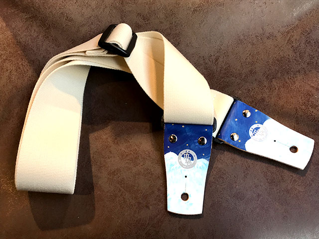 ストラップ本体の素材には柔らかくて肩への馴染みの良いアクリル製を使用し、ベルト調整のバックル部分にはギターを傷つけにくいプラスティックパーツのものを採用しております。可愛さとは裏腹に、使い心地は最高です。