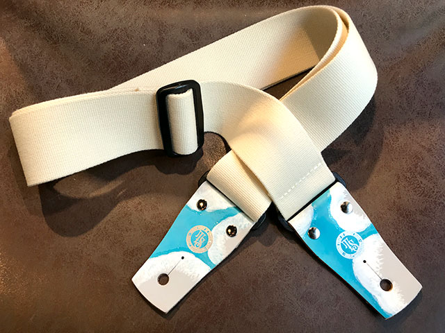 ストラップ本体の素材には柔らかくて肩への馴染みの良いアクリル製を使用し、ベルト調整のバックル部分にはギターを傷つけにくいプラスティックパーツのものを採用しております。可愛さとは裏腹に、使い心地は最高です。