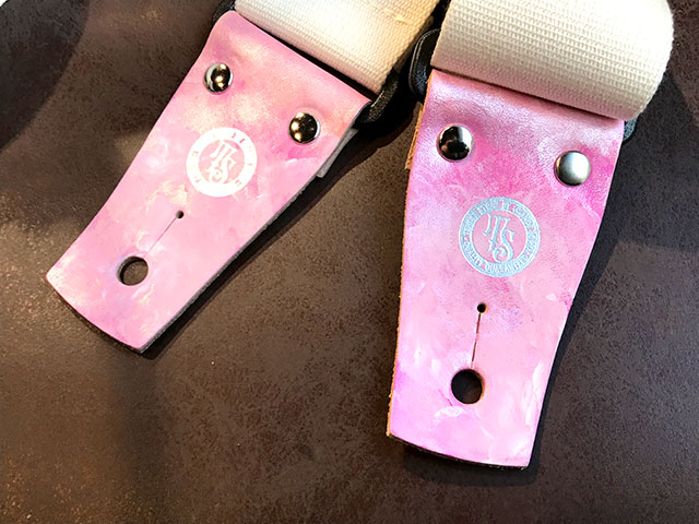 大阪に実店舗を構えるギター・ベースストラップ専門店 Grande uomoがプロデュースする新ストラップブランドTENDER STRAP!! 柔らかくて肩への馴染みの良いアクリル製のベルトを本体に採用したストラップです。 ※こちらはレザーの部分に1点1点ペイントを施した完全一点モノになります。 オフホワイトの柔らかなストラップ生地にペイントデザインが映える、美しい1本。剣先の革はしっかりとした本革を使う事により、強度も◎ ストラップ本体の素材には柔らかくて肩への馴染みの良いアクリル製を使用し、ベルト調整のバックル部分にはギターを傷つけにくいプラスティックパーツのものを採用しております。可愛さとは裏腹に、使い心地は最高です。 また、ストラップピン取り付け部分には、しっかりとした本革を使う事により革がへたりにくくなっております。 革のワンポイントが美しい!1点1点ペイントされて、まったく同じものは存在しない!自分だけのデザイン! ストラップの幅(肩にあたる部分) 5cm ストラップの調整可能な長さ【ストラップピンの取付穴の間の長さ】 約85cm?140cmまで調整可能 ストラップピンの取り付け穴のサイズ 8mm 本体素材:アクリル製テープ 革素材:牛革 ※手作業でペイントされている製品となります。1点限りの商品となります。また、ペイント作業時にどうしても革裏地に塗料が付着してしまいます。予めご了承くださいませ。