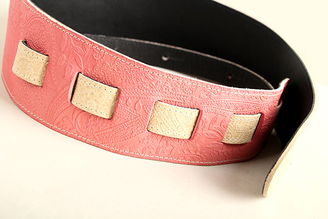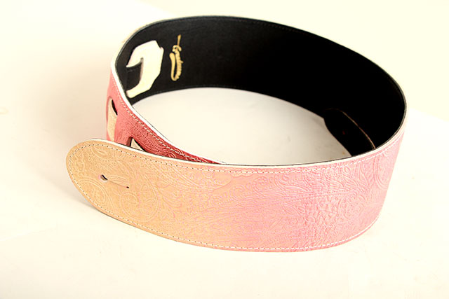ギタリストで革職人である職人さんが全て手作業で製作する高級本革レザーを使用した G-Premium シリーズ。高級感と上品さを兼ね備える G-Premium Paisley Wide Sakura Fade。幅広サイズで。