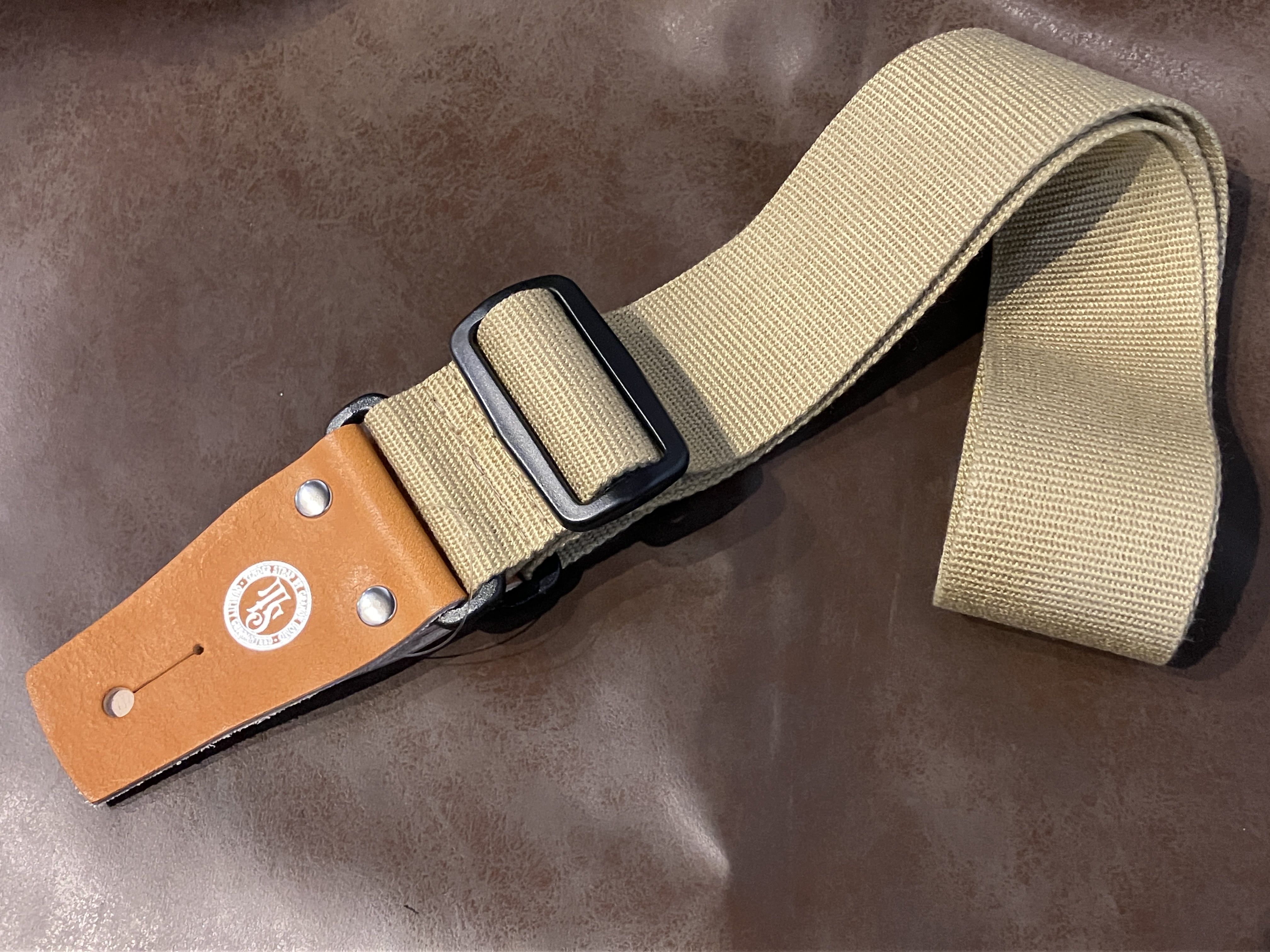 ストラップ本体の素材には柔らかくて肩への馴染みが良い生地を使用、ベルト調整のバックル部分にはギターを傷つけにくいプラスティックパーツのものを採用しております。