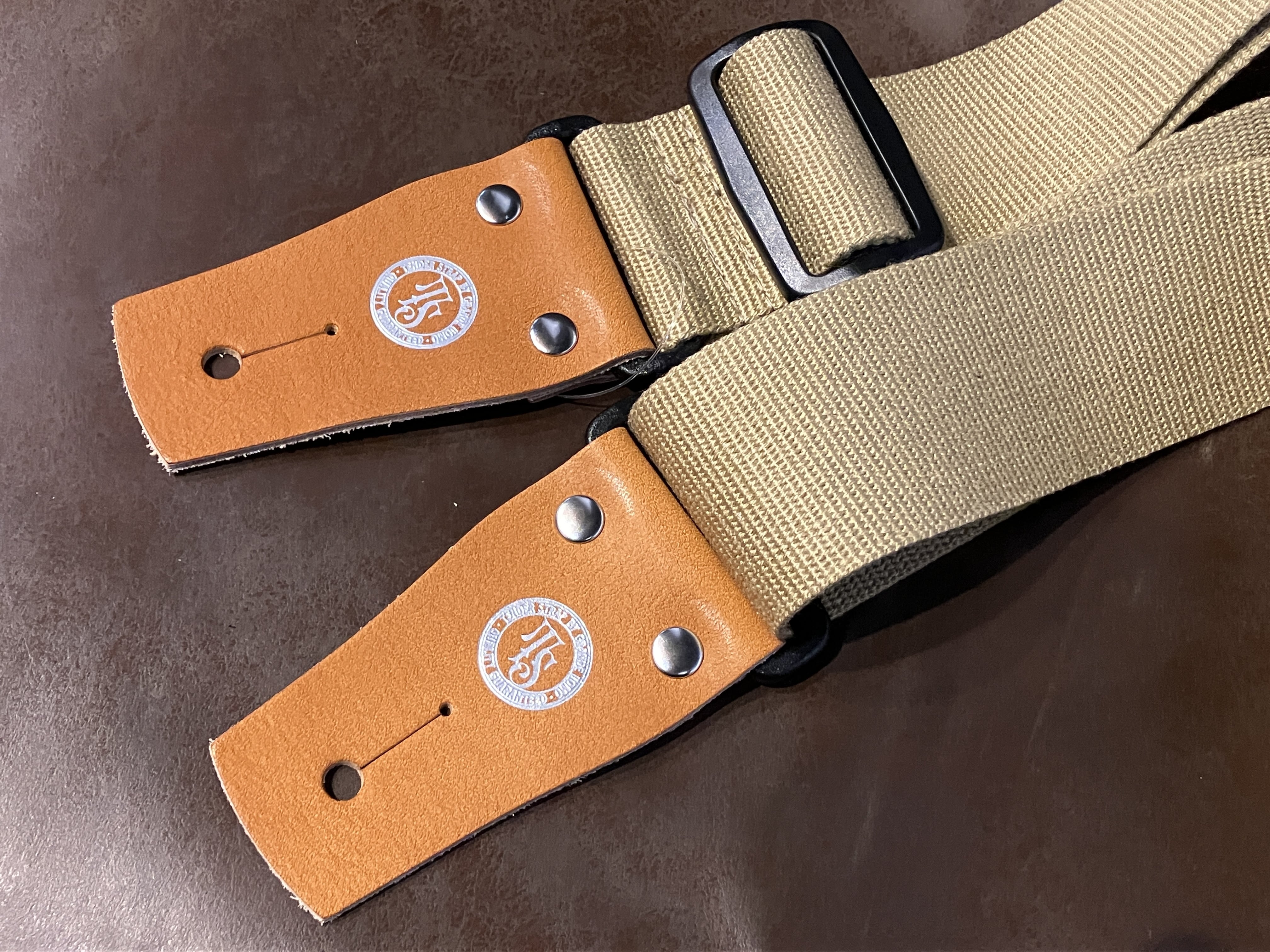 ストラップ本体の素材には柔らかくて肩への馴染みが良い生地を使用、ベルト調整のバックル部分にはギターを傷つけにくいプラスティックパーツのものを採用しております。
