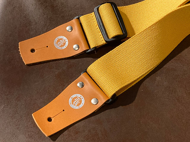 ストラップ本体の素材には柔らかくて肩への馴染みが良い生地を使用、ベルト調整のバックル部分にはギターを傷つけにくいプラスティックパーツのものを採用しております。