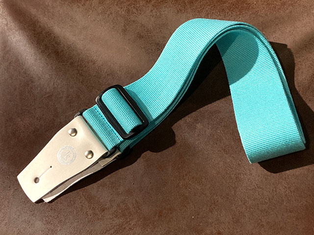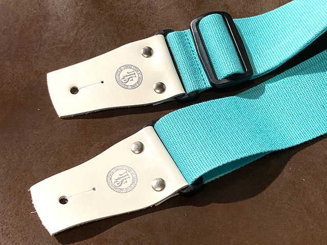 ストラップ本体の素材には柔らかくて肩への馴染みが良い生地を使用、ベルト調整のバックル部分にはギターを傷つけにくいプラスティックパーツのものを採用しております。