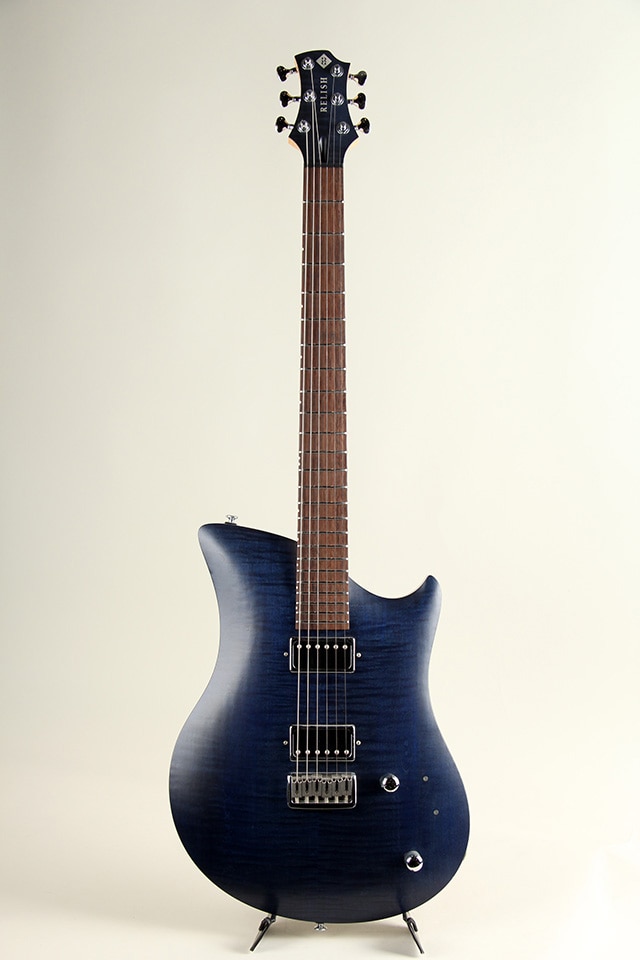 1ピースの削り出しアルミフレームに7層のプライウッドを前後に接着したオリジナルシェイプ。耐久性に優れたステンレスフレットを搭載し、RFコネクタによるソルダーレスで容易に交換可能なピックアップ仕様もレリッシュの特徴です。