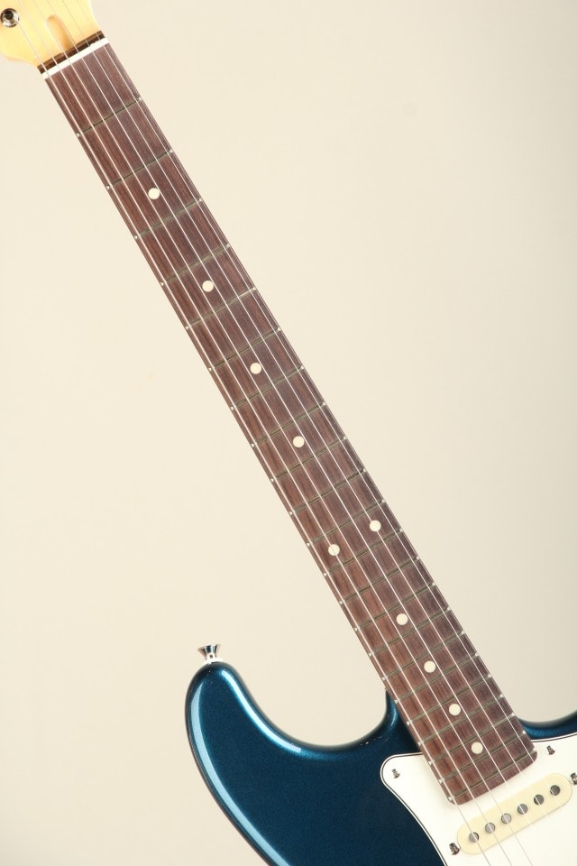 アルダーボディのメイプルネック / ローズウッド指板といった60年代を象徴するウッドマテリアル、つば出し指板の22フレット仕様、スムースなフィンガリングをサポートするフレットサイドのエッジ処理、ローポジションからハイポジションにかけて指板ラジアスが変化するコンパウンドラジアス指板を採用し、FUJIGEN の独自技術であるサウンドのピッチ感を整えるサークル・フレッティング・システムを搭載したこだわりの仕様、ネックサイドのポジションマークには蓄光を採用するなど暗いライブステージでも視認性がアップしております。