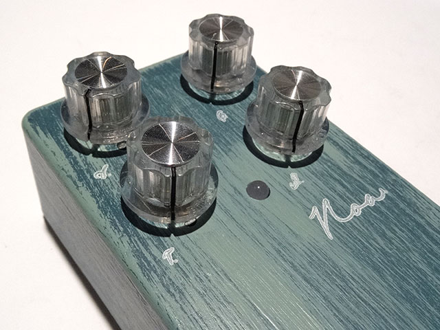 Noaは澄んだ水の様に冴えたサウンドを目指したトランスペアレント系オーバードライブです。ペダル自体の瑞々しさに加え、30hz~300hzまで幅広いFrequencyのlowcutを有し、現場に合わせた使用が可能です。