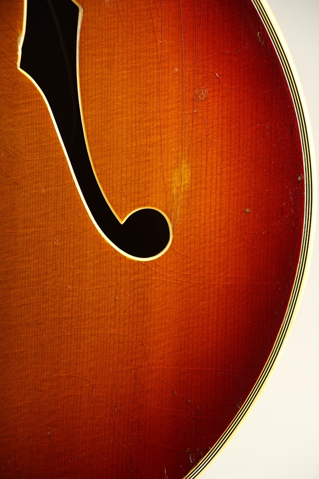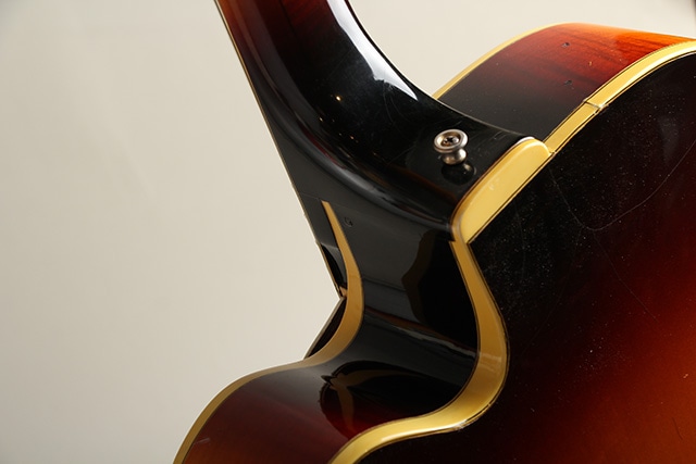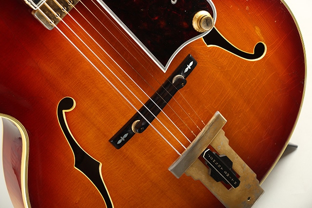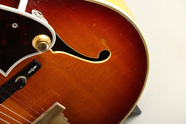ソリッドスプルース・トップ、ソリッドメイプル・サイド&バックによる17インチサイズ・ボディ、Xブレイシングとフローティングピックアップによる豊かな鳴りも特徴で、当機はアジャスタブル・ポールピース無しの初期型オリジナルピックアップが搭載された1962年製です。
