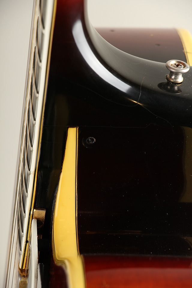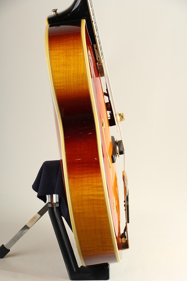 経年から塗装チェッキングや軽度なキズはみられますが塗装の艶もあり年式からして良好な状態です。ネックヒール付近にストラップピン穴埋め、1弦側Fホール付近に少しのトップクラック補修あり。ピックガード、ポット、ジャック(モノラルジャックへ)等が交換。ネックコンディションは良好でトラスロッド余裕有、リナット&リフレットされ残りもあり演奏面も良好です。オリジナルハードケースが付属します。