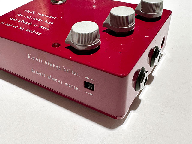 バッテリーは細心の注意が必要とも表記されており、アルカリで10時間ぐらい以内がベストなサウンドだとの事です。常にベストなサウンドを生み出す為に、まずは電源から。異常なノイズが発生した場合は真っ先にフレッシュな電池に交換して下さい。アダプターでも使用可能で、以前のCENTAURではセンター+ミニピン端子が採用されていましたが、KTRでは一般的な9Vセンターマイナスが採用されており、現代のニーズで使いやすく改良されています。