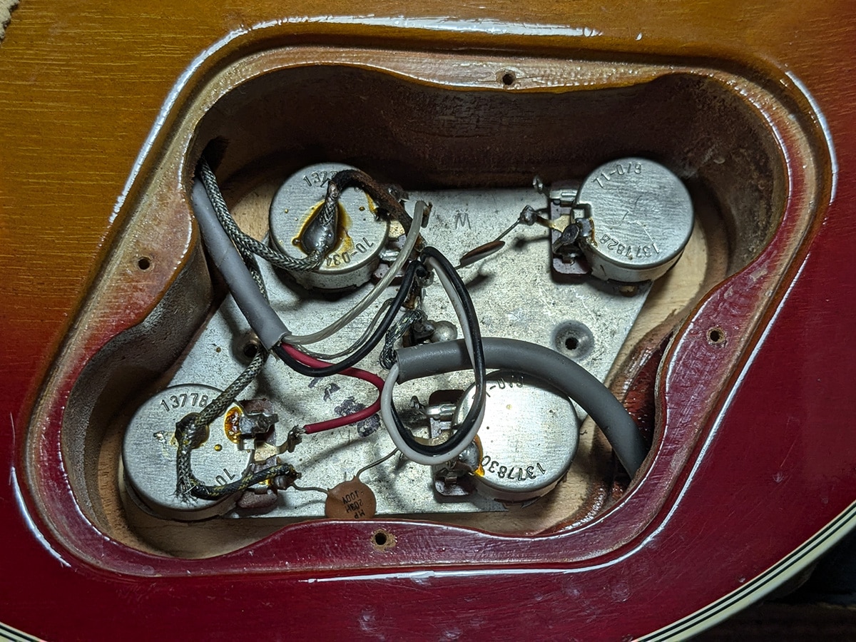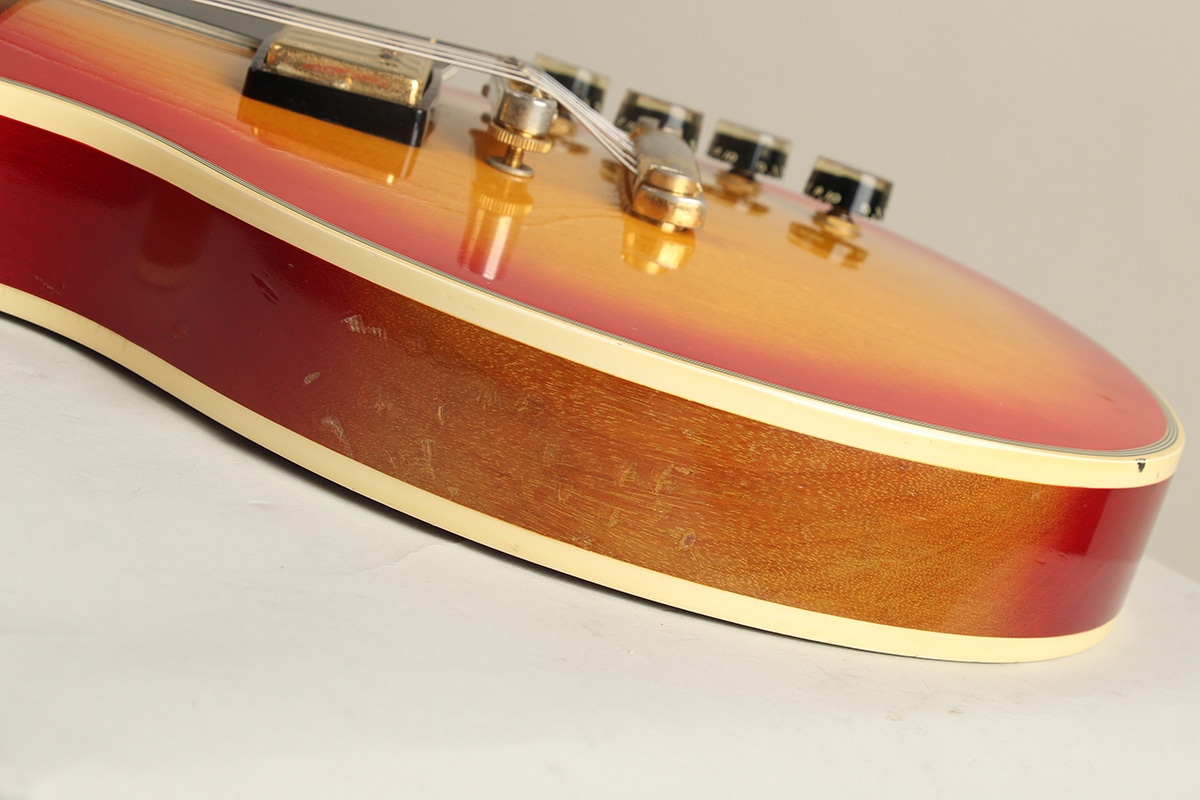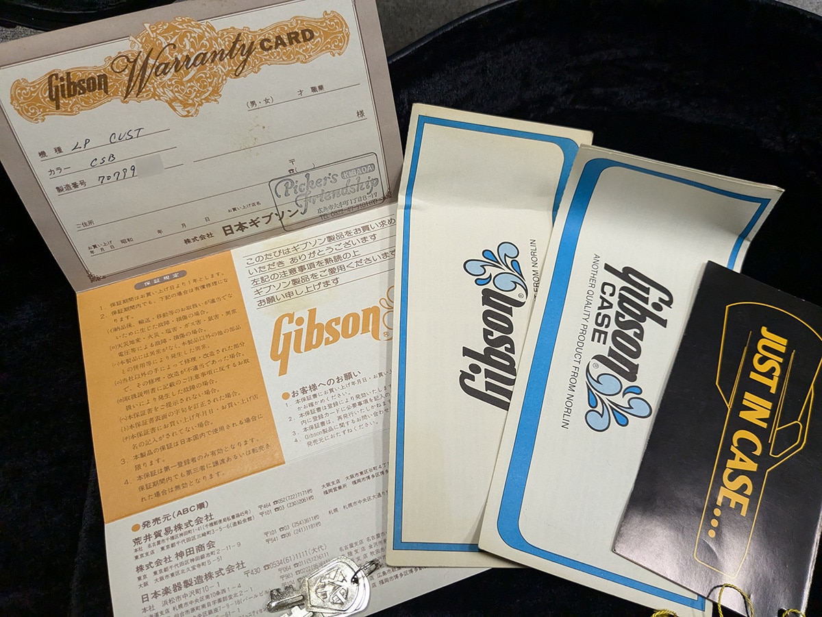 状態としましてフレットが交換。年式からある程度の傷や打痕、バックルキズ等の他、ネックグリップの塗装が?がされておりややべたつきがございますが演奏面は良好な状態をキープ。ネックコンディションも良好でトラスロッド余裕、フレット残りもあり演奏面は良好です。汎用ハードケースが付属します。