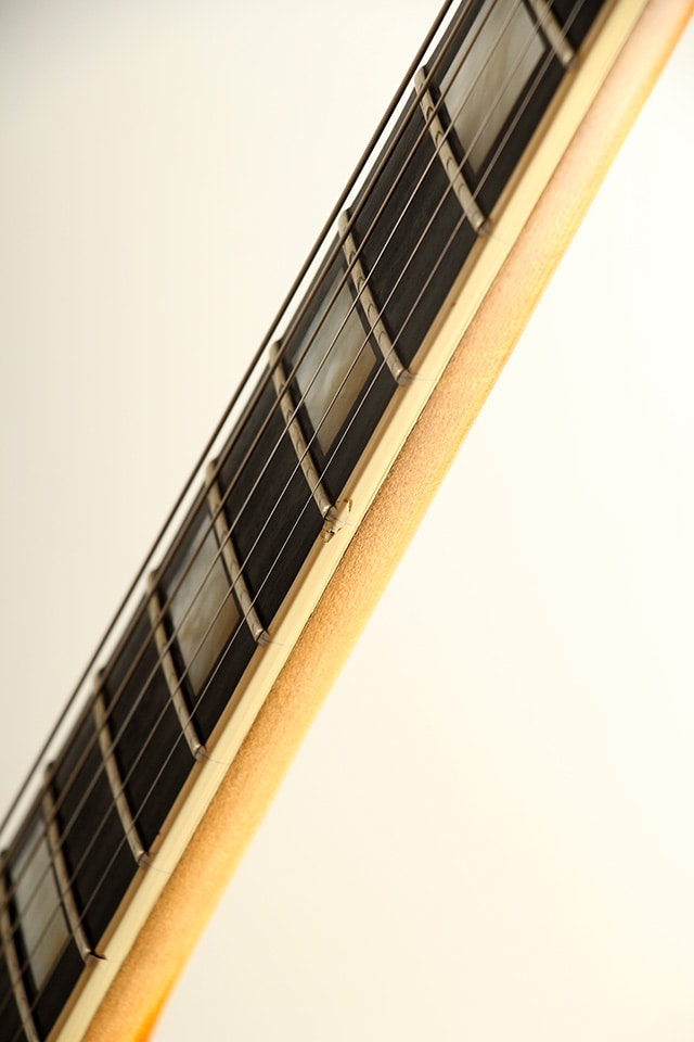 カスタムらしいズッシリとしたボディウェイトから、芯が太く、豊かな低域を持った重厚なサウンドを聞かせてくれます。太さがありながらも、程よくタイトな締りのあるトーンは、クリアに抜けてくれる粒立ちの良さや煌びやかさを持っており、ドライブさせれば粘りの効いた強烈なバイト感を持った期待通りのハードロックサウンドをご堪能いただけます。