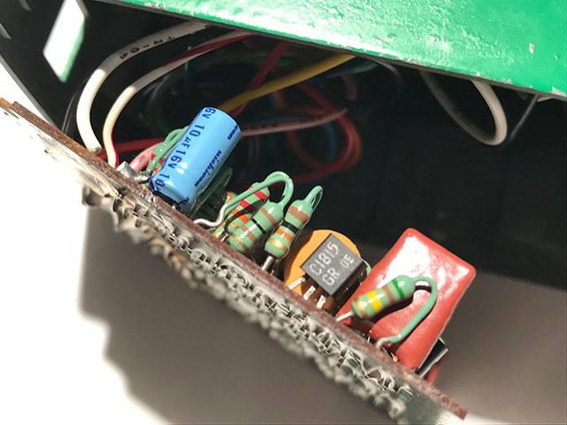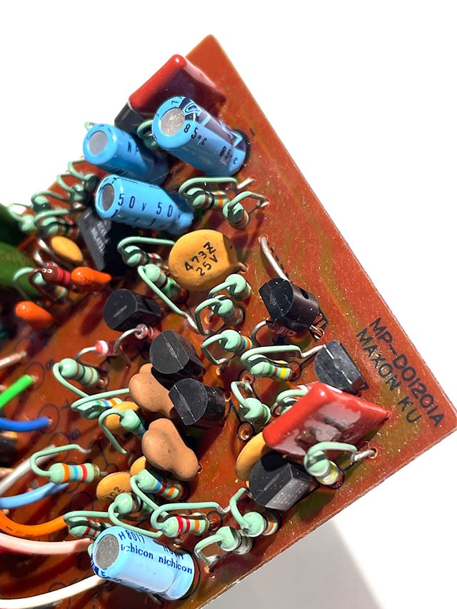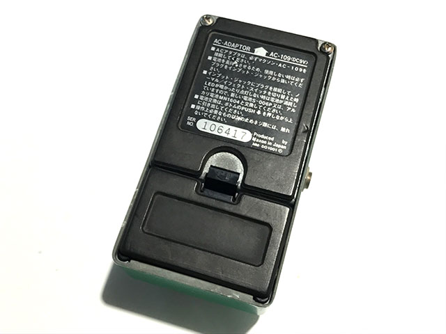 シリアルNo.106417、オペアンプにJRC4558D搭載、基盤にはDO-1201Aの記載があり、基盤と裏蓋を遮る絶縁体は茶色のファイバー紙。さらに、筐体前面にハイフン表記のOD-808、Rマークが記載されていることから、キャラメルスイッチ&ラージボックス初年度の1980年製個体となります。