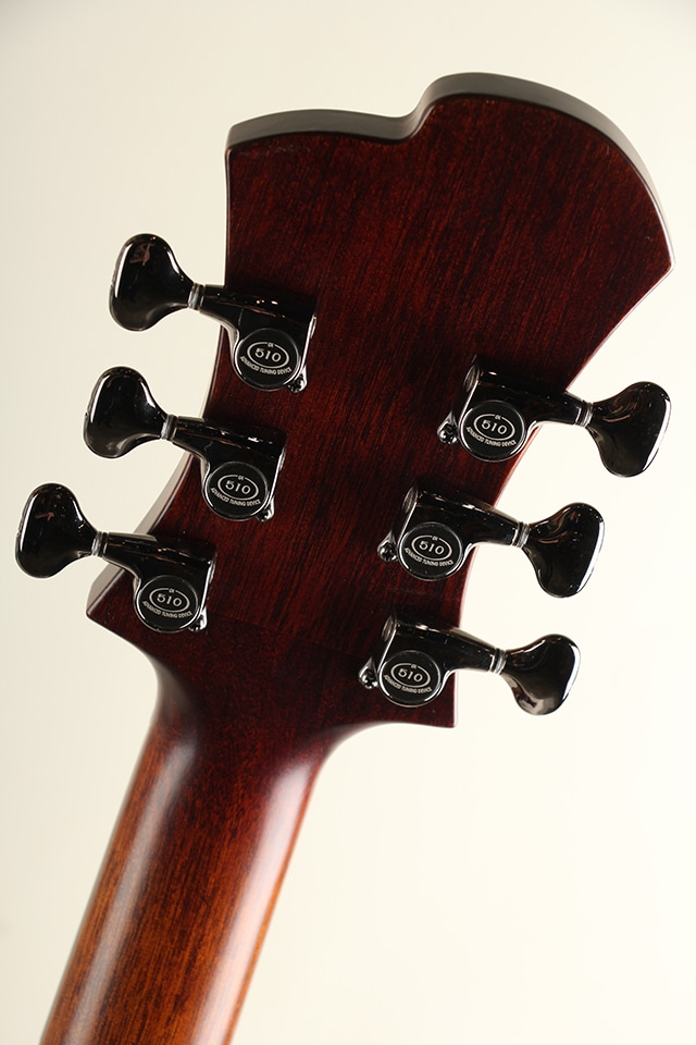 ヨーロピアン・スプルーストップ、マホガニーボディバック、マホガニーネックにエボニー指板にといったウッドスペックが採用。塗装はサテン仕上げ、ギターの重量は2.4kgと軽量でかつ心地よいフィット感を持った見事な仕上がりとなっております。