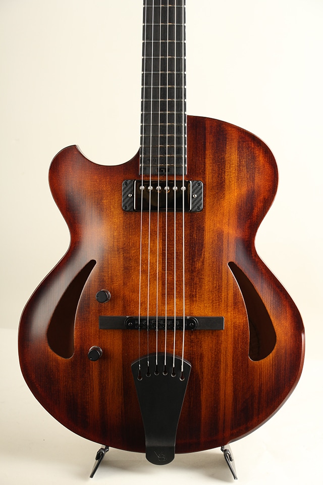 "Victor Baker(ヴィクター・ベイカー)"。自身も卓越したジャズギタリストであり、本拠地とするニューヨークにてアーチトップギター製作開始。ニューヨークの名門と呼ばれるジャズクラブを渡り歩き、名を挙げたベイカーがギター製作に着手したのは2000年。多くのギタリストに愛用されその品質は現場で証明されています。