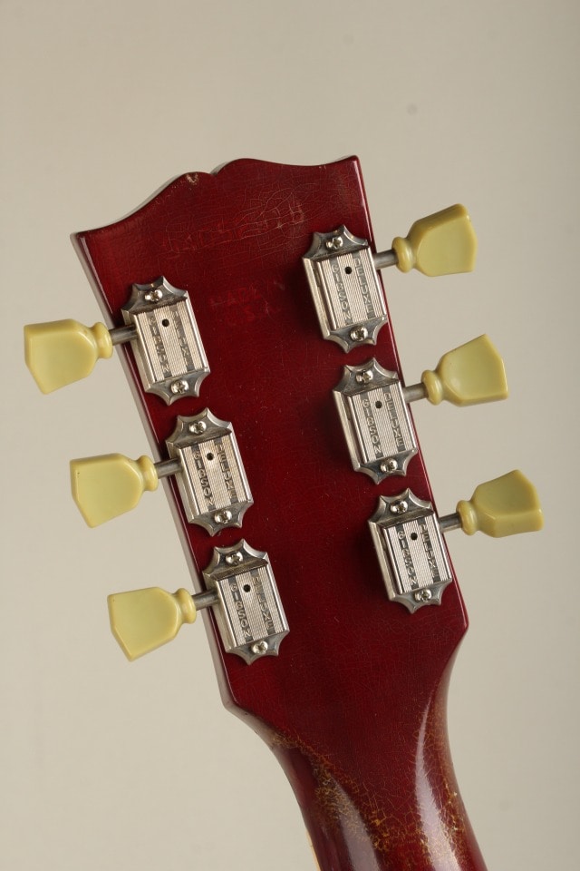 ペグやテールピースがおそらく後年の同タイプものに交換されていると思われますが、ネック状態良好、トラスロッド余裕あり、フレット8割以上残っており、演奏面状態良好でございます。