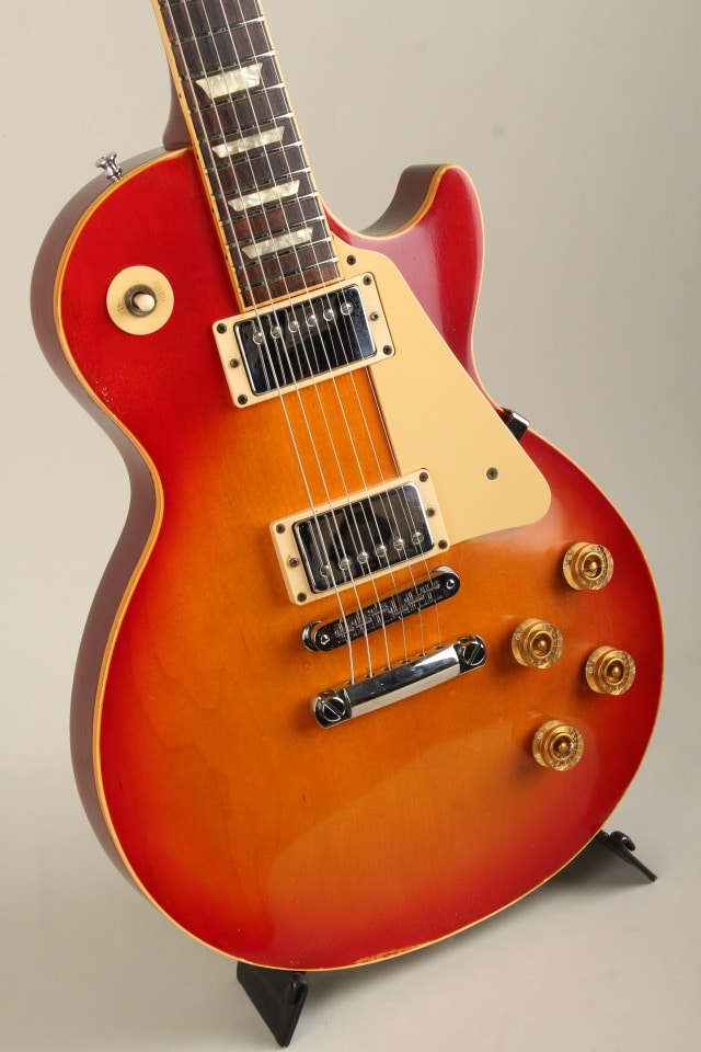 赤みが強くくっきりとしたグラデーションのサンバーストフィニッシュ、ナッシュビルチューンOマチックブリッジ、ゴールドのスピードノブなど、この年代特有のスペックを持つ一本でございます。