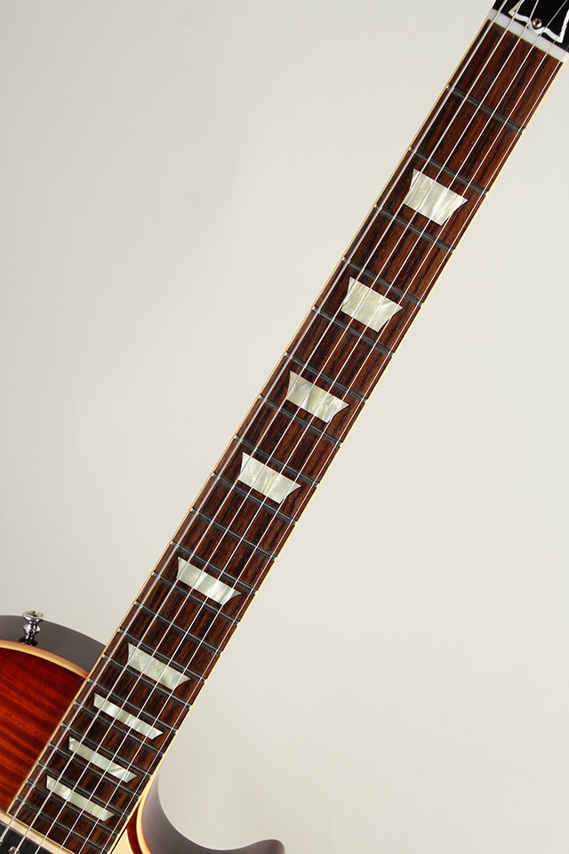 レスポールらしいファットさに加えて、ハリのある煌びやかな高域がトーン全体に抜けの良さをもたらしております。歪ませれば期待通りの太さと粘りがあり、それでいて出音自体が非常にクリア、ファットであり透明感もある上質の響きを聞かせてくれます。クリスピーに弾ける極上のミッドレンジを聞かせるリア、甘さと太さがクリアに抜けるフロント、そしてセンターから生まれる抜群の鈴鳴り感溢れるトーンは、レスポールの旨みを存分に感じさせてくれる至高の響きと言えるでしょう。