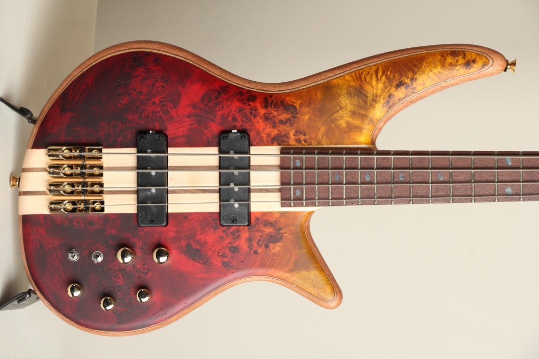 Pro Series Spectra Bass SBP IVは、ポプラバール/ウォルナット/メイプル/ウォルナット/マホガニーを使用した、マルチラミネイト構造のボディを採用。洗練されたFirestorm Fade のユニークなボディフィニッシュと、シンプルな"J"ロゴが入った、ユニークな2 x 2マッチングヘッドストックを備えています。