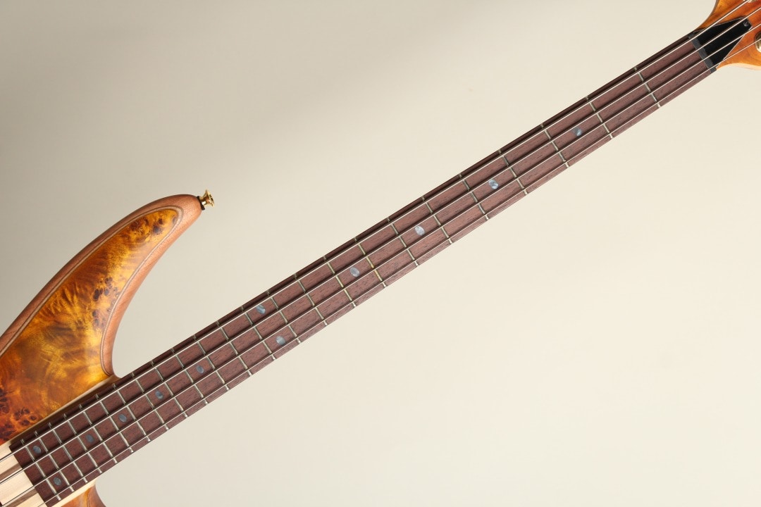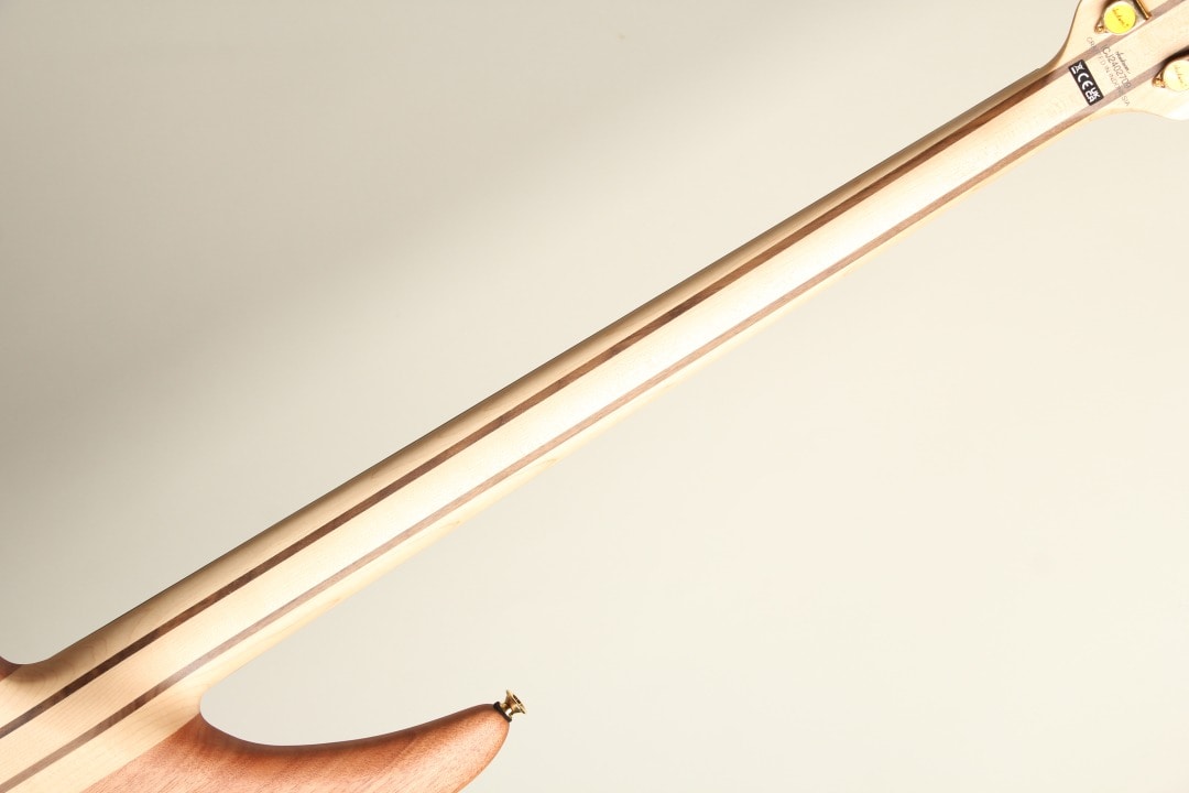 オフセットなスペクトル形状のボディは、プロミュージシャンを念頭に設計され、楽器全体に均等に重量を分散し、完璧なバランスと演奏の快適さを実現する、大きなアッパーホーンを備えます。グラファイト補強ロッドを内蔵したメイプル/ウォルナット/メイプル/ウォルナット/メイプルの5ピーススルーネックは究極の安定性と、驚くべきサスティンを実現します。12~16インチコンパウンドラジアス仕様のキャラメライズドジャトバ指板には、24本のジャンボフレット、楕円形のダークパールインレイを配し、優れた演奏性と共に、卓越したトーンを提供します。
