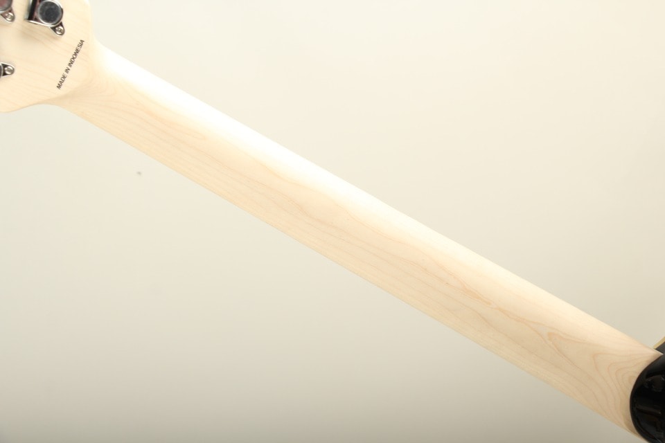 ボディにダイレクトにマウントされたオリジナルのハムバッカーピックアップ、安定したチューニングで激しいアーミングプレイが可能なロック式トレモロブリッジ、6弦側に比べ1弦側がわずかに薄いシェイプでデザインされた左右非対称ネックシェイプなど、本家USA製モデル譲りの本格スペックを引き継いで数量限定生産でのリリースでございます。