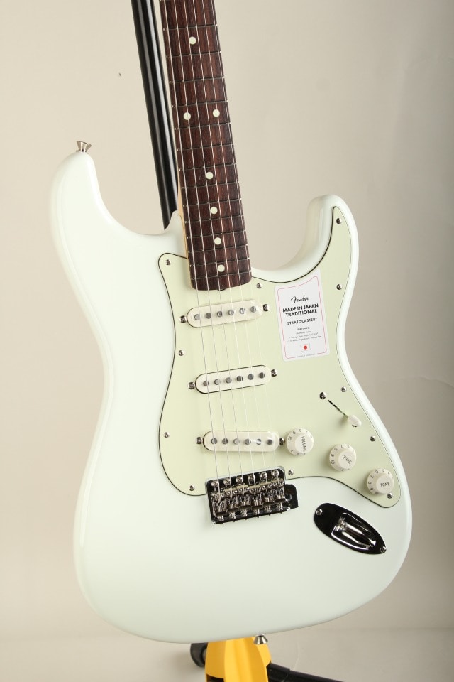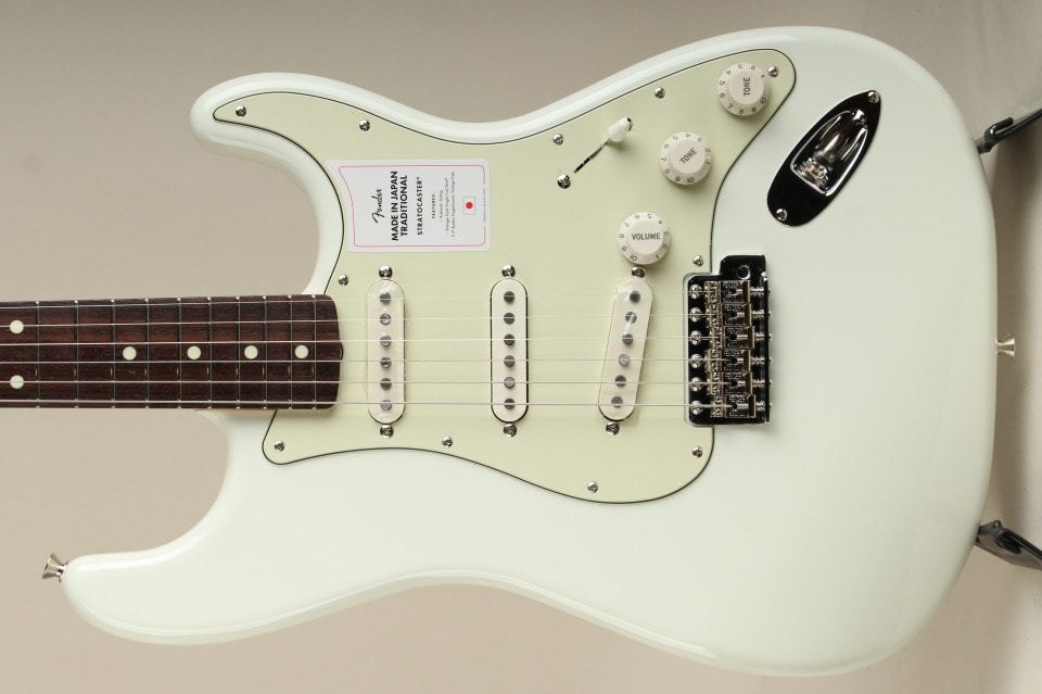 Made in Japan Traditional 60s Stratocaster?はグロスフィニッシュのバスウッドボディを採用。21本のヴィンテージスタイルフレットを装備した9.5インチラジアスの”U” シェイプメイプルネックがTraditionalシリーズならではのクラシカルな演奏製を提供します。6サドル式ヴィンテージスタイルSynchronized Tremoloブリッジ、そしてTraditionalシリーズのために選定されたオリジナルピックアップはリアルで音楽的なヴィンテージトーンを奏でます。細めに設計されたナット幅は日本のプレイヤーにも弾きやすい仕様となっています。堅実なギタークラフトマンシップと、プレイヤーのニーズに柔軟に対応する答えが、本シリーズに反映されています。