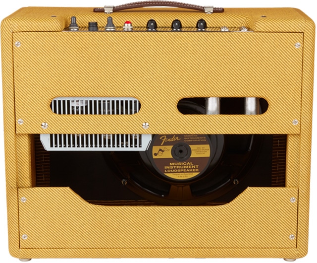 ‘57 CUSTOMシリーズは、オリジナルトーンを再現するために、フェンダー独自のイエローカップリングのキャパシタを採用したことで、艶のある豊かなヴィンテージトーンが甦りました。また、すべての製品はハンドワイヤリングで丁寧に作られており、熟練の職人技が凝縮されています。また、当時と同様、黄金色が印象的なヴィンテージツイード、チキンヘッド・コントロールノブやレザーハンドルに至るまで、妥協のないこだわりのルックスがサウンドの魅力を引き立てます。