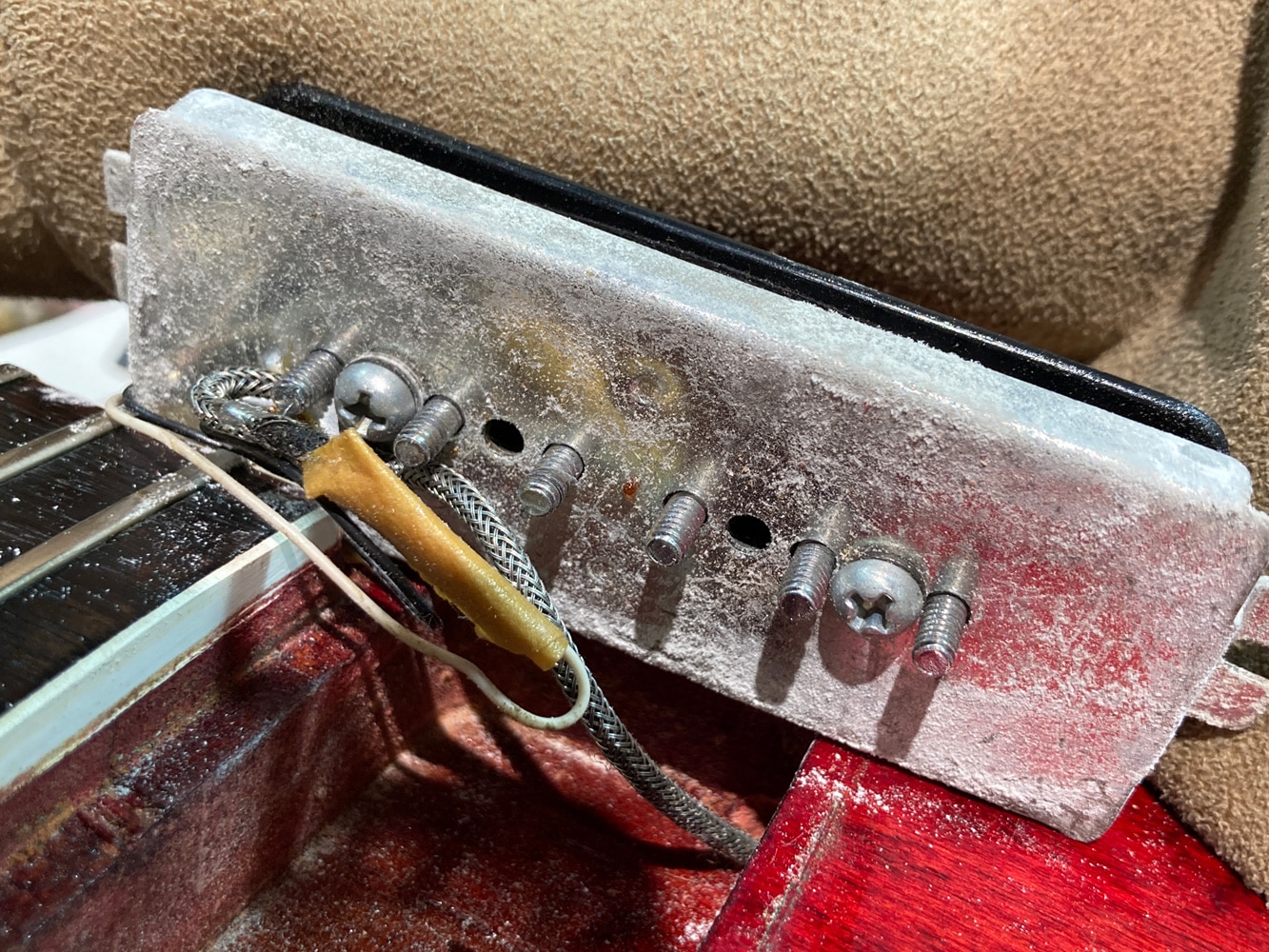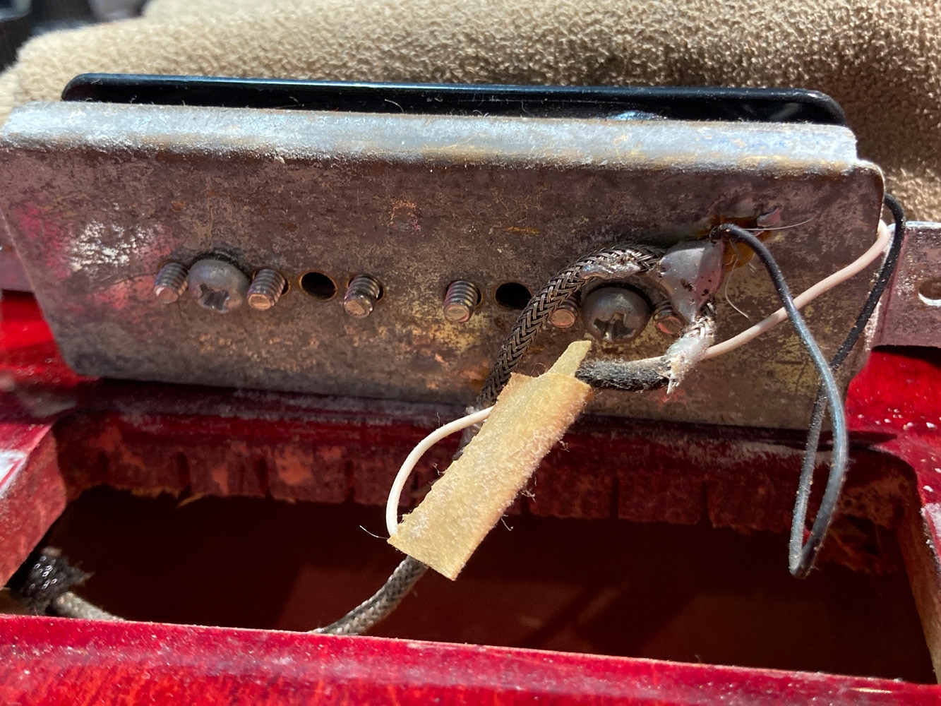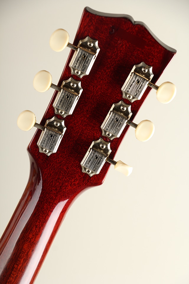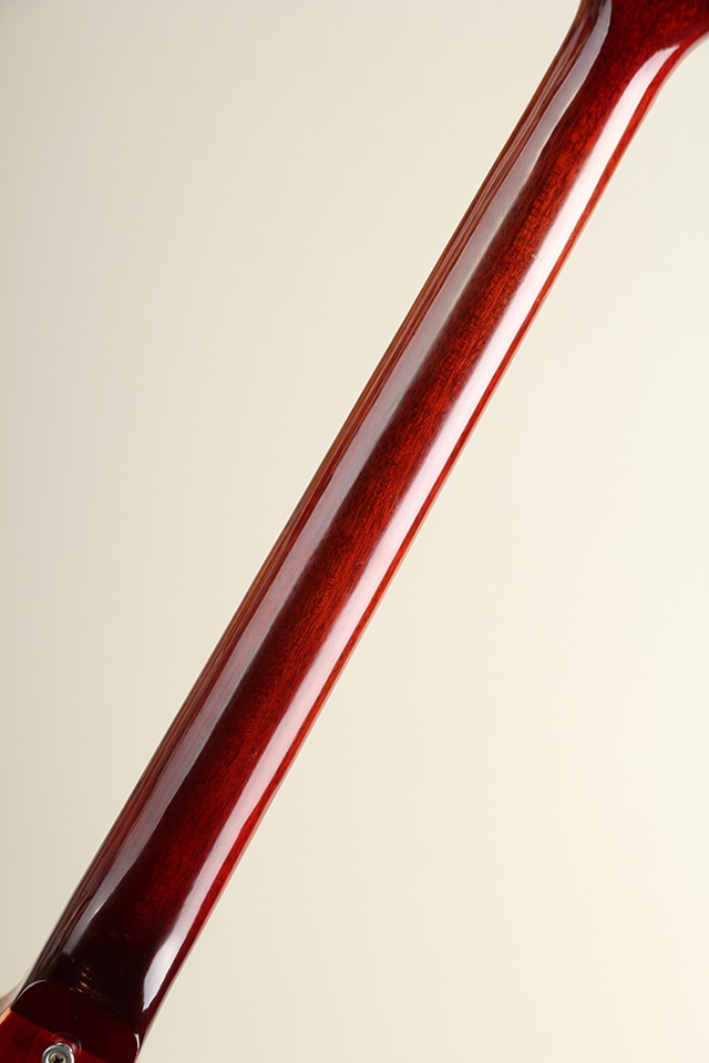 完全ホロウ構造にP-90の組み合わせは50sギブソンのフルアコES-125やES-175などでおなじみで実に素直なトーン。抜群の生鳴りから生まれるサウンドは、ホロウ構造ながら非常に素早く立ち上がり、タッチに対してのレスポンスも申し分ありません。当機は元々のブランコ・テールピースからBigsby B3に交換、Bigsby自体は同年代の物で自然な風合いです。67年シリアルに67年ポットデイト。