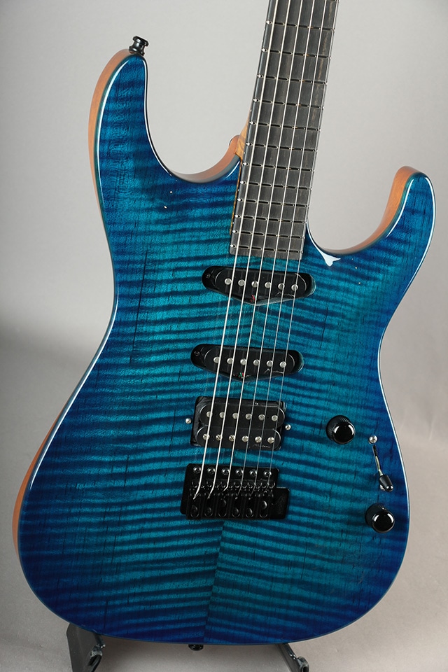 当機はTorrefied加工の施されたF4Aグレードの Torrefied Figured Mapleを贅沢に使用し、同じくTorrefied加工の施されたFlame Mapleネックを採用したカーブトップ・モデル。
