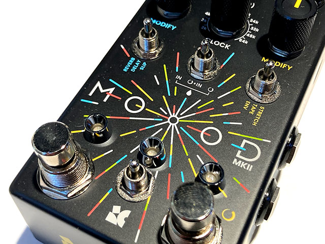 MOOD MKIIをユニークなエフェクトたらしめる最大の特徴である、CLOCKコントロール。クロックスピード/サンプルレートを可変させることでペダル全体の「処理速度」を操る新感覚のパラメーターです。