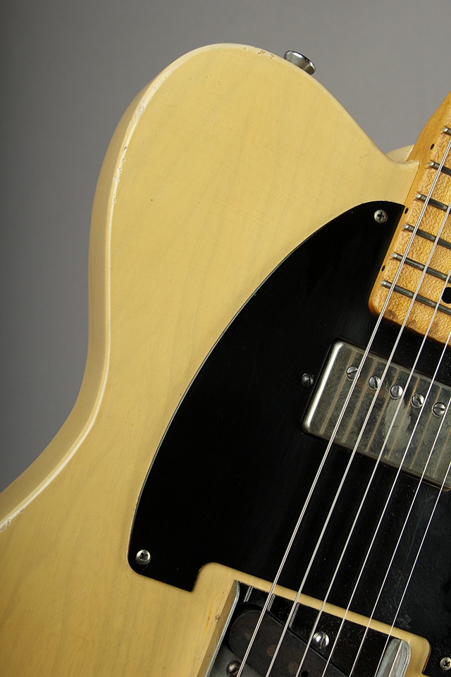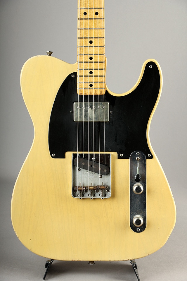 当機1950-52 BlackguardはTelecaster登場当初の姿を見事に再現、復元した個体で、ネック形状は所謂Vシェイプ調でハイポジションにかけてやや丸みを帯びた印象、フロントピックアップにハムバッカーを搭載させた仕様の1本です。