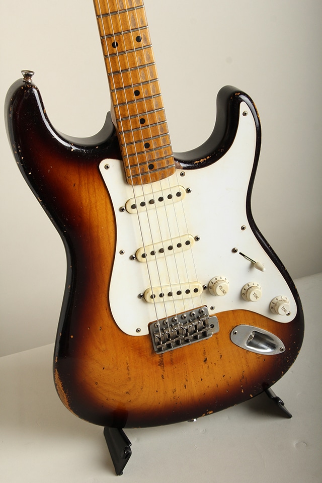 オリジナル・ブラックガード・レプリカにおいて高い評価を得るNacho氏による、圧巻の完成度を誇る50's Style Stratoモデル。Mid 50's Contour Body Heavy Aged 2 Tone sunburstの入荷です。