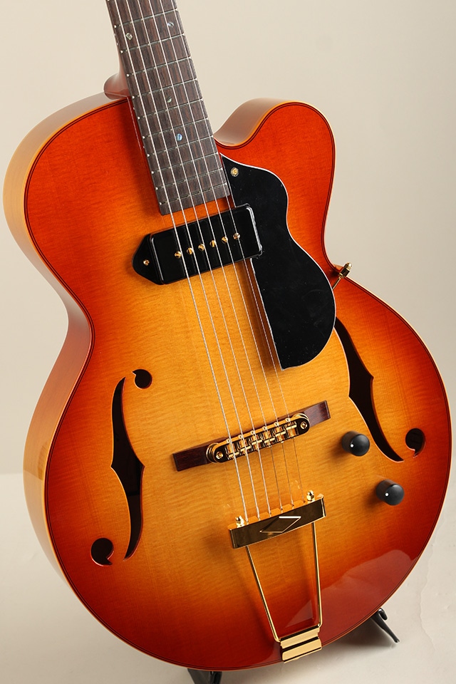 ディープボディから成る深みのある豊かな鳴りが素晴らしく、P-90から成る芯の太い立ち上がりの良いサウンドは、明瞭な分離感と芳醇な倍音感を持った上質な響きを聞かせてくれます。タッチに対する反応も良く弾き手のニュアンスにしっかりと応えてくれる印象です。