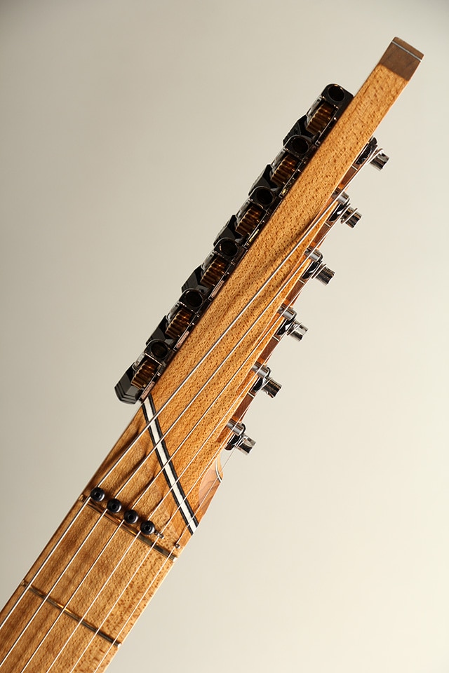 一際目を引く独創的なデザインながら収まりの良いボディシェイプで、ネックには人工的に高音熱処理加工を施したトリファイド・メイプル・ネックを採用。長い年月を経た木材のような乾燥状態が再現されており、豊かな生鳴り、軽量なウェイトを実現しており、高い演奏製とフィット感をプレイヤーに与えてくれます。塗装はわずかに艶感を持たせたような極薄塗装で、鳴りも良く、フィット感も申し分ありません。