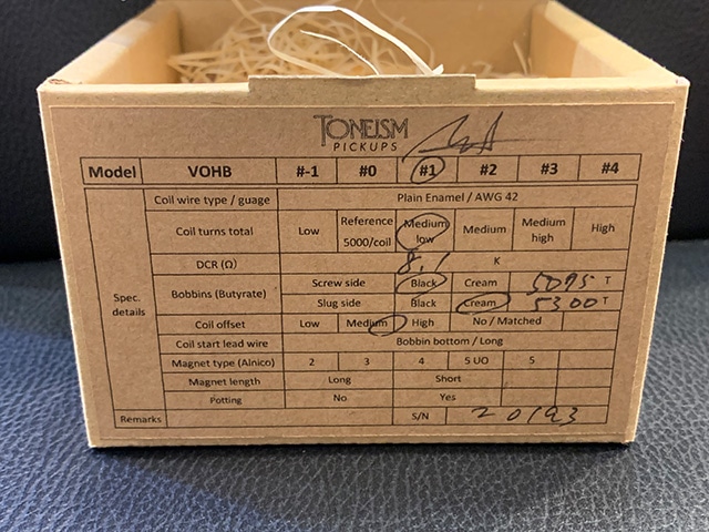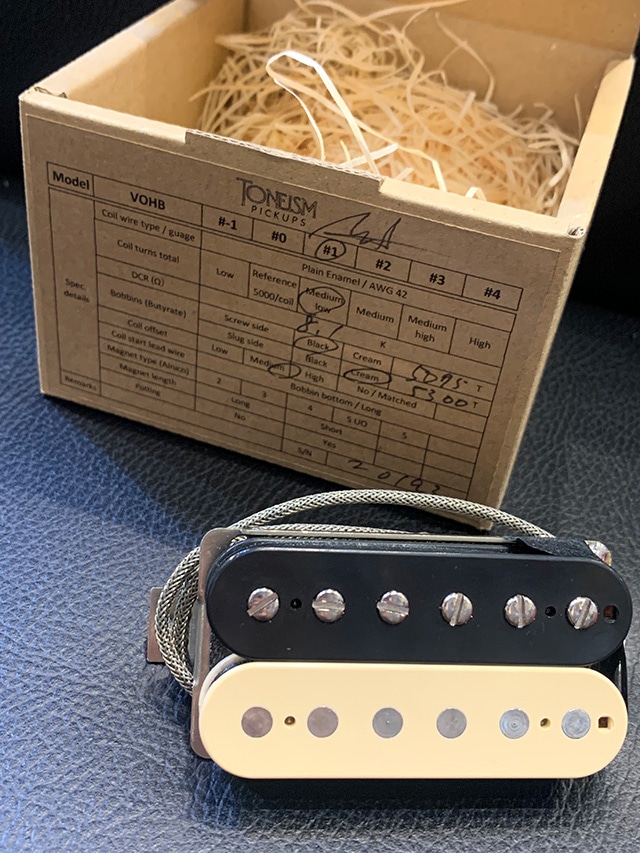 当モデルVOHB #1は、王道の50's 仕様を追求したフロント搭載を前提としたタイプで、スタンダードなフロントとしての抜け感と分離の良さを考えアレンジされています。枯れ感がありながらもスウィートな質感がありフロント向きで、当店販売のVOHB #1 Zebra S/N:2 0194とのセットもお勧めです。
