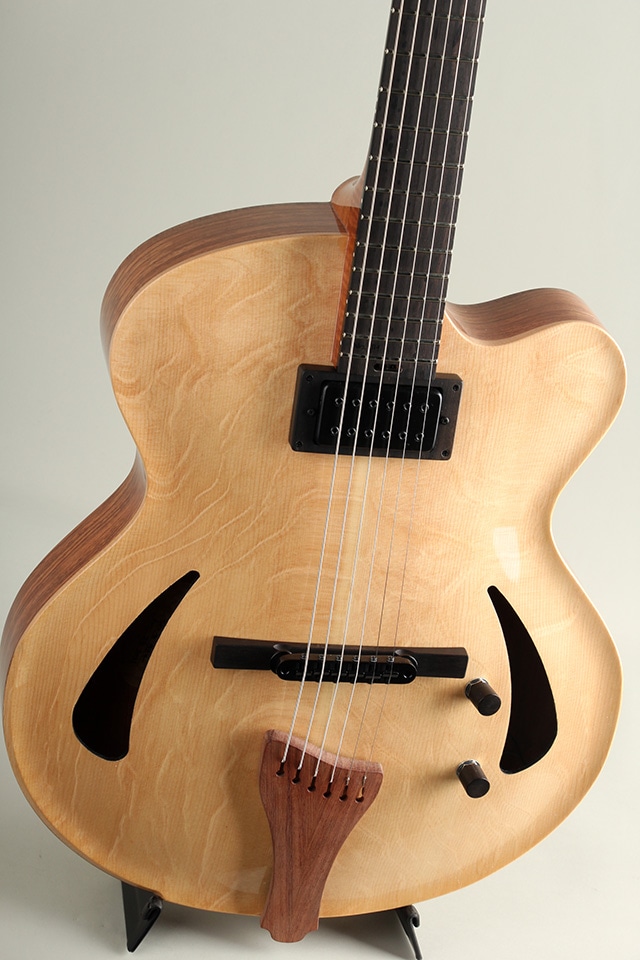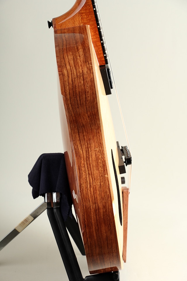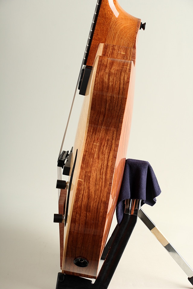 当機は木材の高級感と美しさを活かすため極薄のグロスフィニッシュで仕上げられております。ギターの重量は2,62kgと、驚くほど軽量でかつ心地よいフィット感を持った見事な仕上がりとなっております。