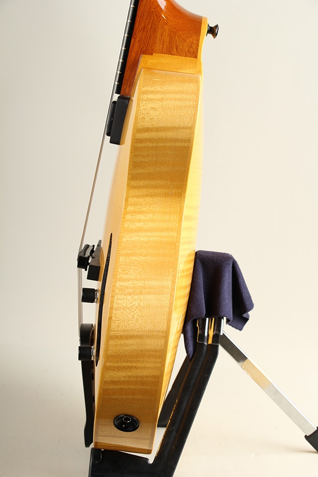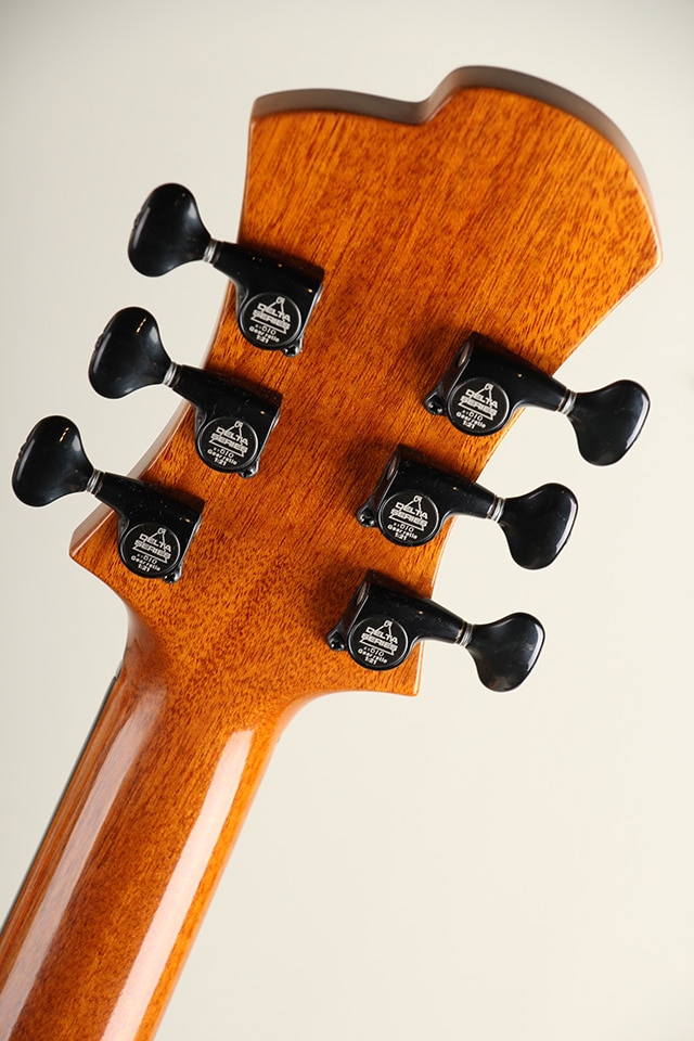 ボディトップにはチェロを製造するために製材されたイタリアンプルース材を使用し、サイドバックにもチェロ用のイタリアン・フレイム・メイプルが贅沢に使用されております。その他マホガニーネック、エボニー指板といったウッドスペックが採用。