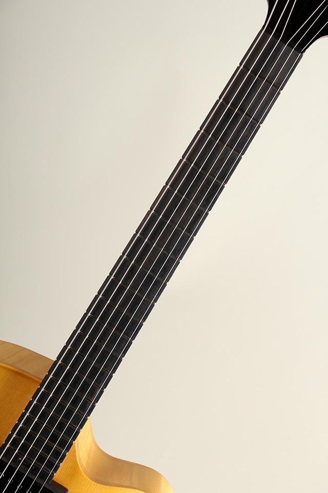 当機は木材の高級感と美しさを活かすため極薄のグロスフィニッシュで仕上げられております。ギターの重量は2,41kgと、驚くほど軽量でかつ心地よいフィット感を持った見事な仕上がりとなっております。